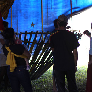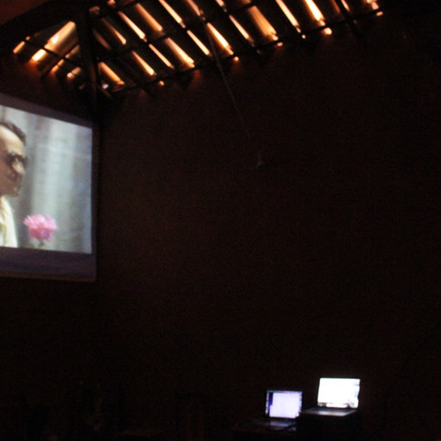 No meio da manhã saímos para realizar exercícios na cidade. Durante a prática os educadores escolheram livremente os dispositivos buscando explorar mais as ruas e bairros periféricos localizados no entorno do Centro Histórico. Saímos em dois grupos e visitamos e filmamostrês espaços: casa da Nena (História dos Objetos), Circo Bismark (Espaços Vazios, Câmera Subjetiva, Lá longe Aqui perto) e quintal da D. Maria (História das Plantas). No retorno para o Espaço Imaginário um dos grupos editou o som das entrevistas realizadas por D. Nena.
